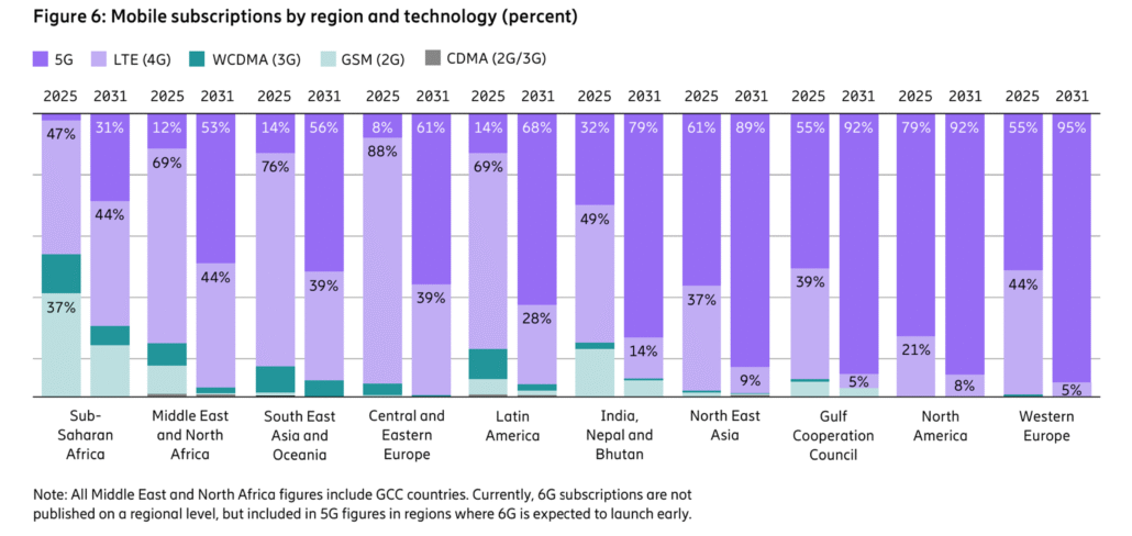 Intitulé « Ericsson Mobility Report November 2025 », le rapport précise que les abonnements 4G devraient enregistrer une croissance moins soutenue de 3% en moyenne par an dans la région, passant de 490 millions cette année à 570 millions en 2031.